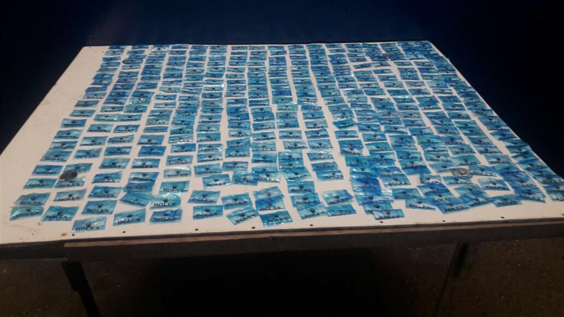 Tras huir las personas los elementos preventivos se acercaron a revisar la bolsa, encontrando en su interior que estaba repleta de bolsitas pequeñas transparentes de color azul con leyenda en su exterior de color negro “Rolex”.