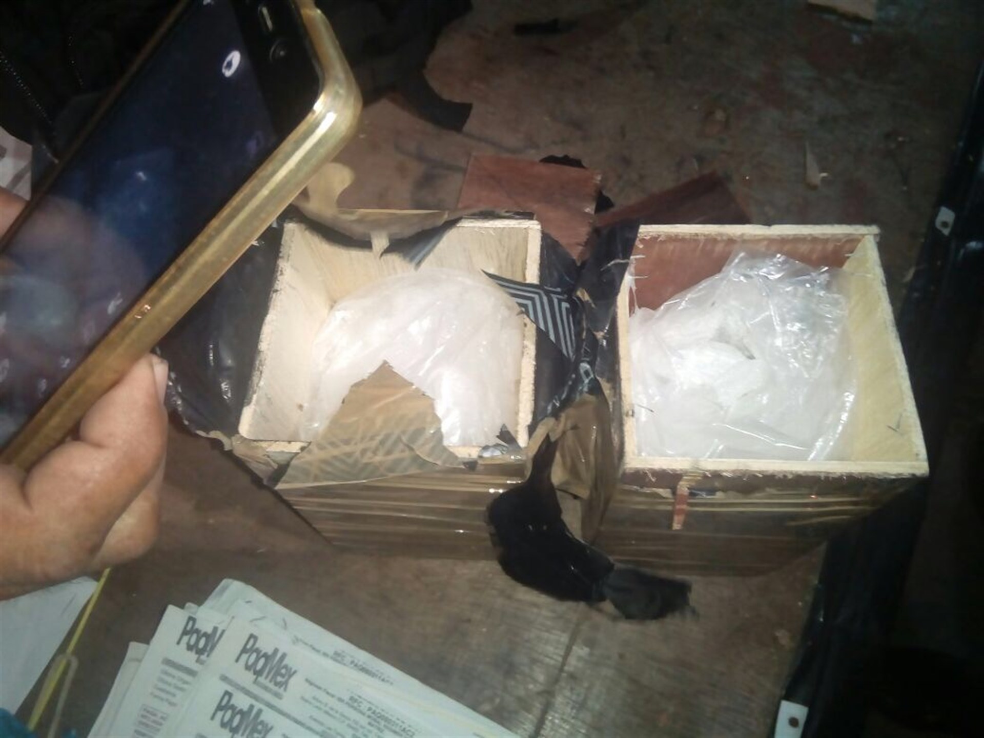 Según informes, la droga iba en un tractocamión marca kenworth, propiedad de la empresa de mensajería PacMex, en la que transportaban una mesa de madera, misma que al revisar las patas encontraron poco más de 880 gramos de cristal.