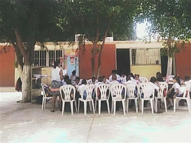Los Mochis, Sin.- Alumnos de la escuela primaria Tierra y Libertad cumplieron este viernes una semana tomando clases al intemperie, ya que no hay salones disponibles para ellos.
