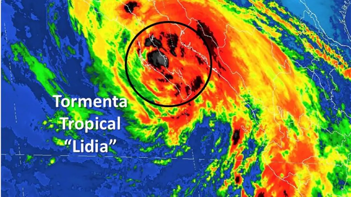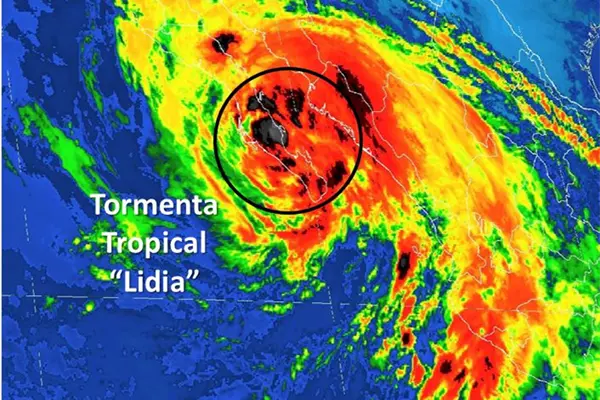 Ciudad de México.- Tormenta Tropical "Lidia" se mantiene en tierra sobre Baja California Sur, ocasionando lluvias intensas y vientos fuertes sobre la Península de Baja California, Sonora, Sinaloa, Nayarit, Jalisco, Colima y Michoacán, además de oleaje elevado en dichos estados.
