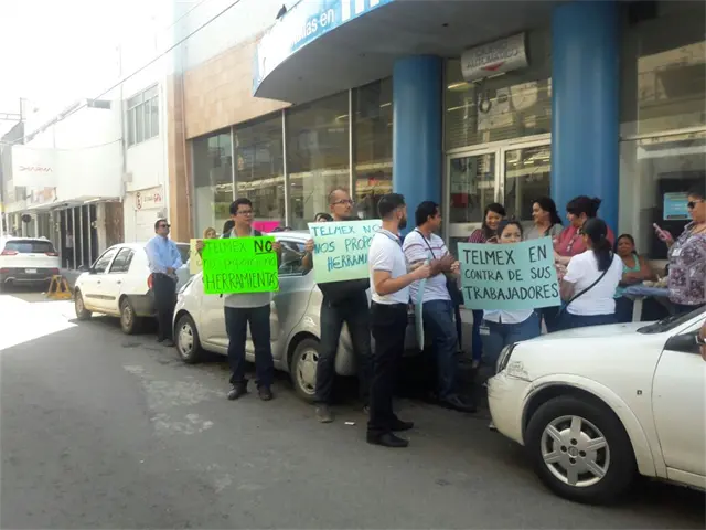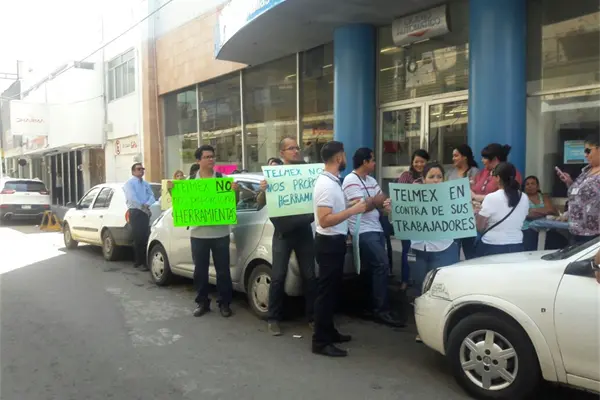 Con pancartas en mano, a la entrada de la oficina central y las sucursales, se apostaron los empleados agremiados, quienes manifestaron durante todo el día por la inconformidad que tienen hacia la empresa de telefonía.