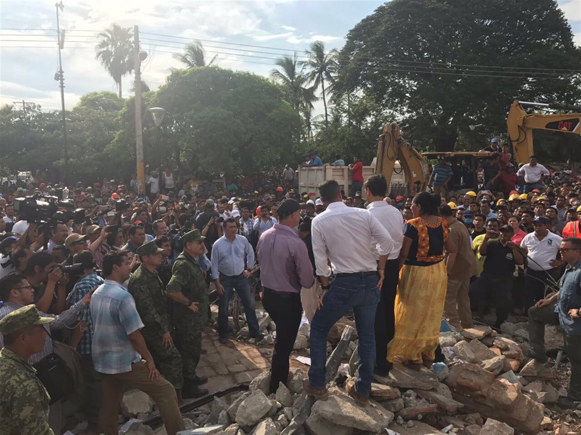 Acompañado por los secretarios de Gobernación, Miguel Ángel Osorio Chong; Defensa, Salvador Cienfuegos; Marina, Vidal Soberón, y el gobernador de Oaxaca, Alejandro Murat, escuchó los testimonios de los habitantes que fueron afectados, a quienes les aseguró que contarán con todo el apoyo institucional.