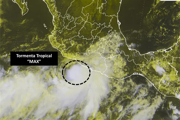 Ciudad de México.- Durante la tarde de hoy, en el Océano Pacífico, al sur de las costas de Guerrero se desarrolló la tormenta tropical Max, con vientos máximos sostenidos de 65 kilómetros por hora (km/h) y rachas de 85 km/h, informó el Servicio Meteorológico Nacional (SMN), dependiente de la Comisión Nacional del Agua (Conagua).