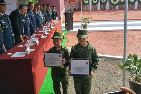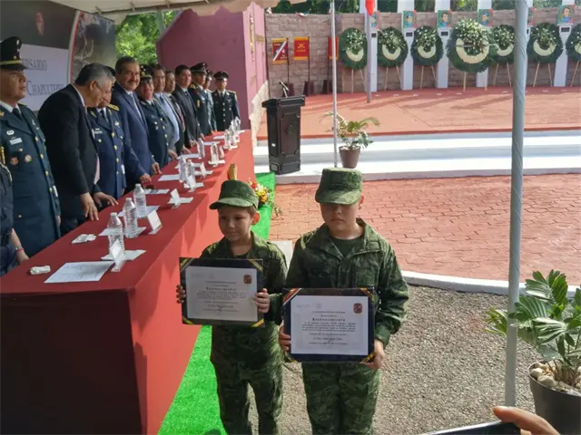 Al término del evento, se hizo entrega de un reconocimiento a dos menores estudiantes de la escuela Primaria Lázaro Cárdenas, por ser soldados honorarios y de ahí se pasaron a realizar las guardias de honor frente al monumento a los Niños Héroes, en donde se colocaron ofrendas florales.