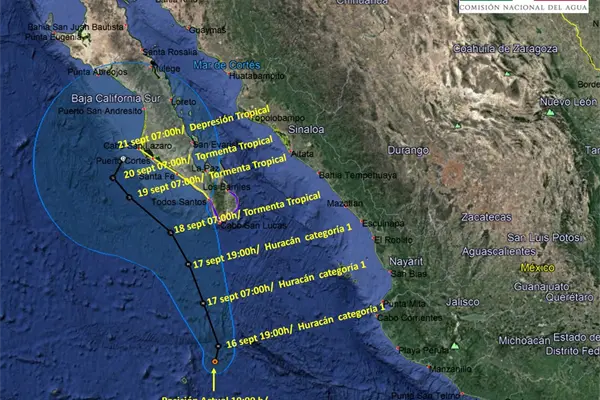 Ciudad de México.- El Servicio Meteorológico Nacional (SMN) informó que el huracán Norma se aleja de Los Cabos Baja California Sur, pero que impactará más al norte de esa entidad ya como tormenta tropical.