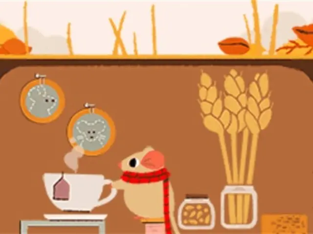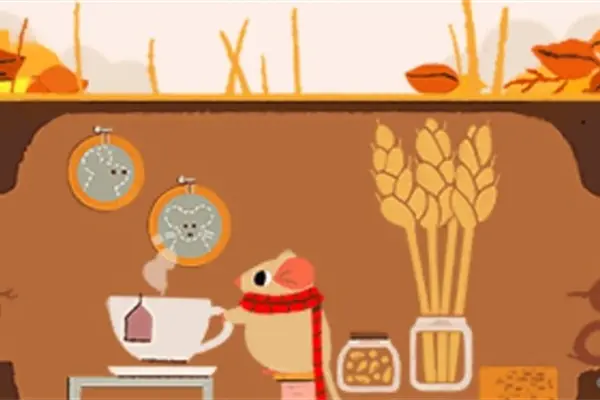 El buscador de Internet, creó un doodle con colores característicos del otoño como el rojo, marrón y anaranjado, que muestra un ratón que brinca sobre hojas para después entrar a su hogar por debajo de la tierra para tomar una taza de té caliente.