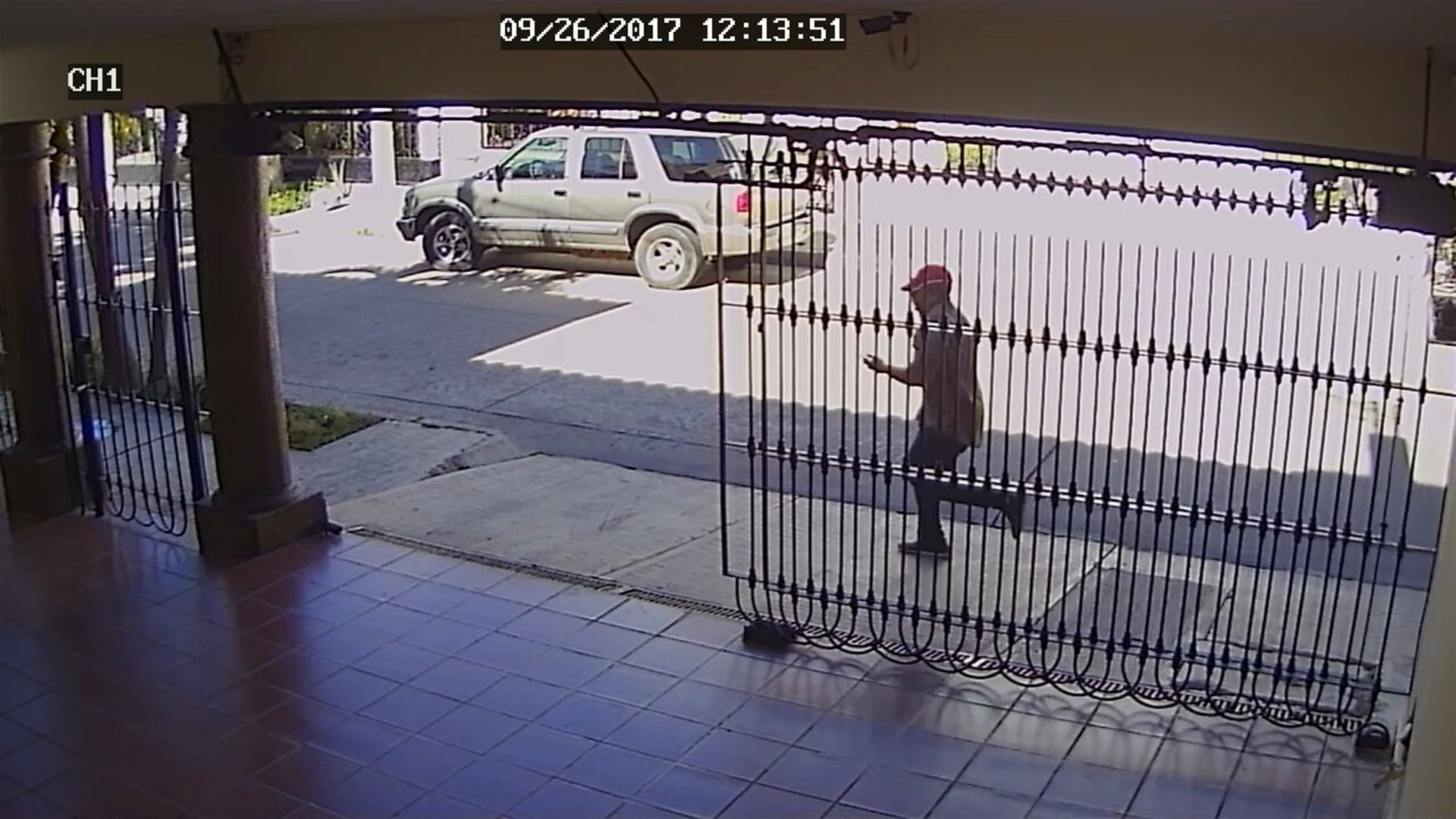 En el audio la mujer narra que ocurrió a las 10:00 horas de este martes, pero en una fotografía, al parecer captada por la video cámara de vigilancia de una vivienda contigua, donde se observa justo en el momento en el que este hombre huía de lugar, aparecen las 12:13:51 de este día.