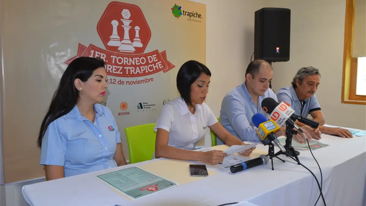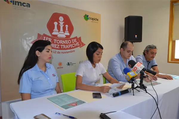 En rueda de prensa presidida por Martha Melissa Inzunza, Directora Operativa de Trapiche; Jesús Ramón Preciado, Presidente del Comité Municipal de Ajedrez; Cinthia Ibarra, Coordinadora de Educación e Investigación de Impulsora de la Cultura y de las Artes IAP; y el profesor Jaime Zepeda, vocal del Comité Municipal de Ajedrez, se dieron a conocer los pormenores de este torneo.