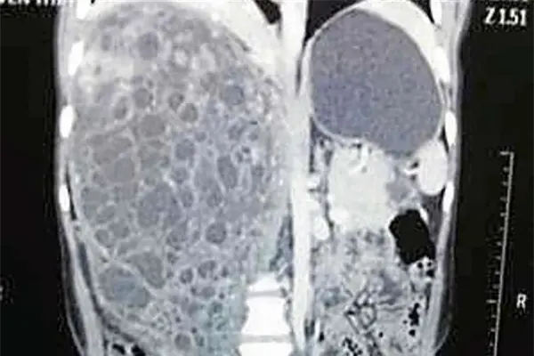 Una tomografía computarizada reveló que el tumor había cubierto casi por completo al riñón derecho, comprometiendo la vida de la paciente.