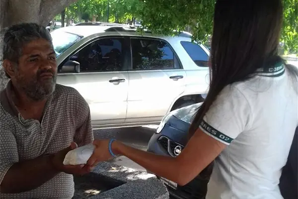 Los Mochis, Sin.- Alumnos de Cobaes 02 entregaron tortas preparadas por ellos mismos a personas de bajos recursos económicos y en situación vulnerable o de calle.