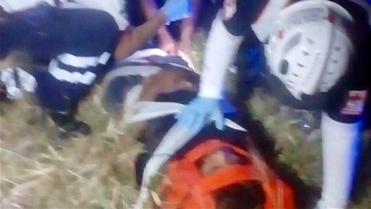 Tras la caída resultó con golpes en distintas partes del cuerpo y una fractura en la pierna derecha.