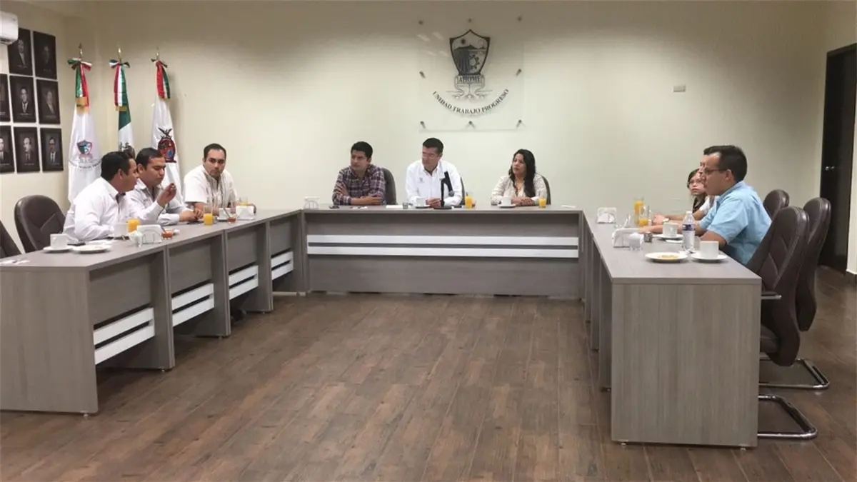 Los Mochis, Sin.- El alcalde de Ahome, Álvaro Ruelas Echave, se reunió este martes con los jóvenes que participaron en el debate político juvenil que se realizó hace 15 días en Cabildo.