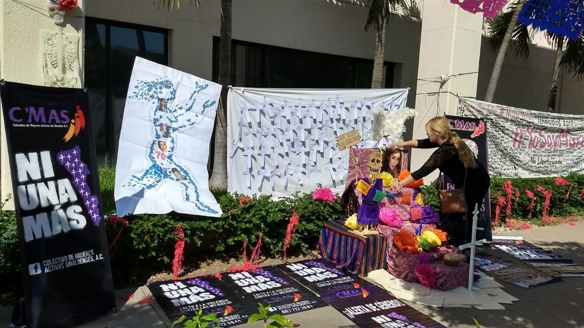 Culiacán, Sin.- El Colectivo de Mujeres Activas de Sinaloa se manifestaron la mañana de hoy afuera del edificio de la Fiscalía General del Estado (FGE), donde montaron un altar para recordar a todas las víctimas de feminicidio en Sinaloa y exigir que se resuelvan sus casos.