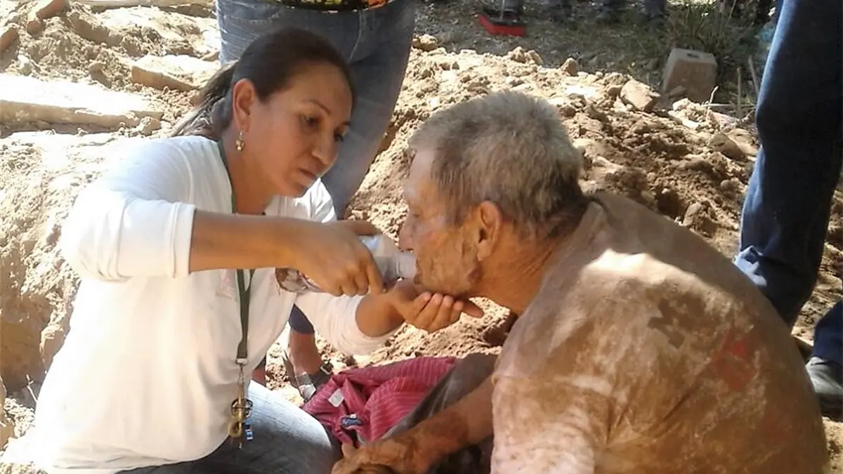 El adulto mayor resultó lesionado tras ser rescatado de entre los escombros