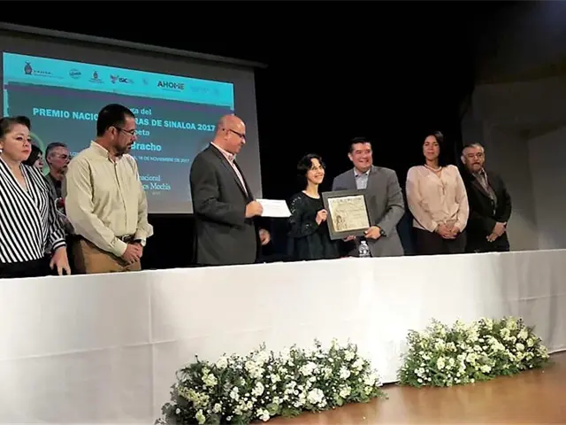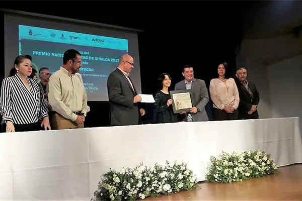 De manos de Papik Bernal, director del ISIC y en representación del gobernador de Sinaloa, Quirino Ordaz Coppel y el alcalde de Ahome, Álvaro Ruelas Echave, la poeta ganadora de premios y galardones nacionales e internacionales por su labor en el mundo de la letras, recibió este nuevo reconocimiento en las instalaciones del Centro de Innovación y Educación.