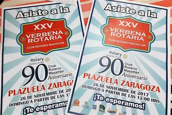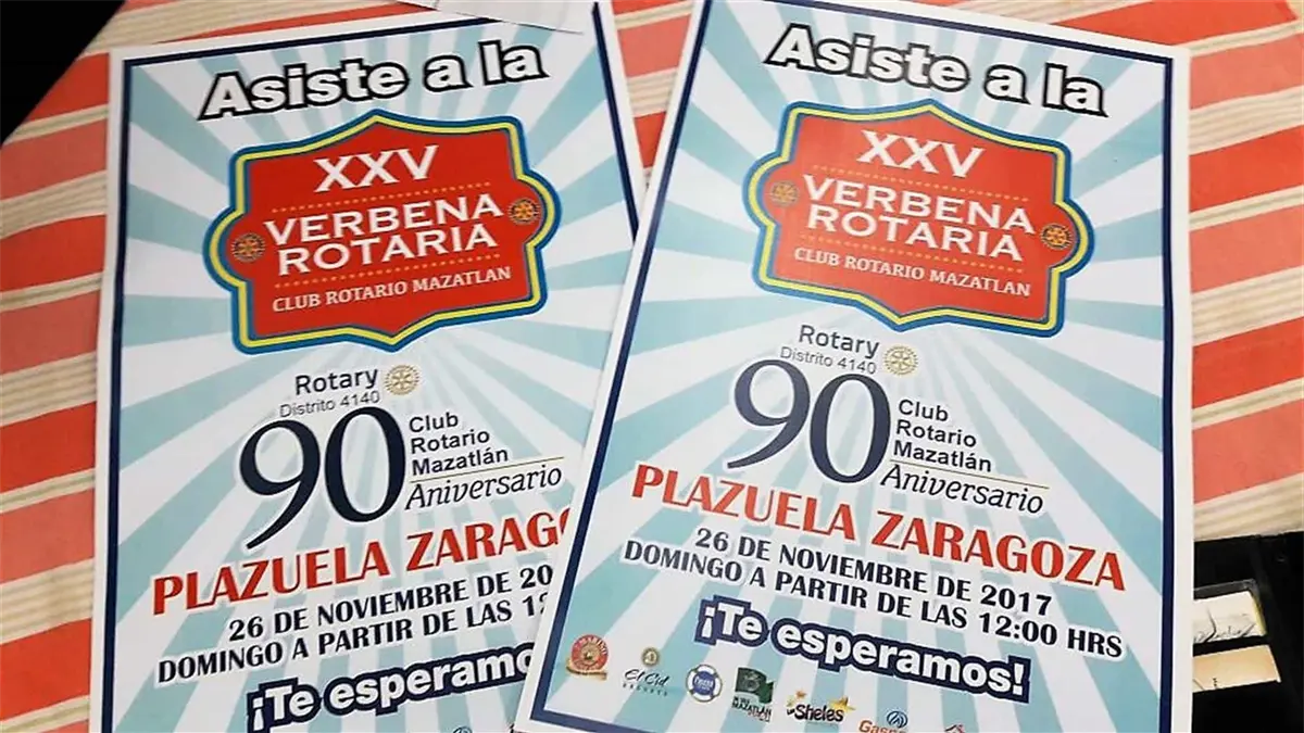En esta ocasión, informó el presidente del Club Rotario de Mazatlán, Tsutomu Yoshi, la tradicional Verbena Rotaria 2017 será en la Plazuela Zaragoza, en la sector Centro, este domingo 26 de noviembre desde las 12:00 horas y hasta las 20:00 horas.