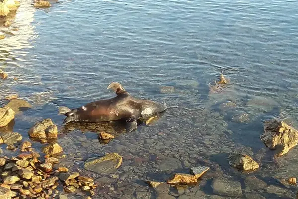 Las causas de su muerte se desconocen pero a simple vista se le observan algunas heridas en el cuerpo del lobo marino.