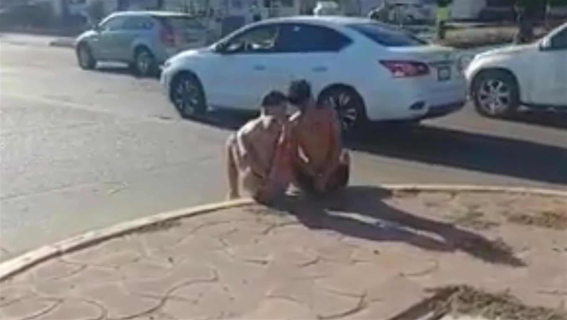 El hecho causó curiosidad entre los automovilistas que pasaban por el lugar, quienes detenían la marcha para ver a los dos jóvenes.