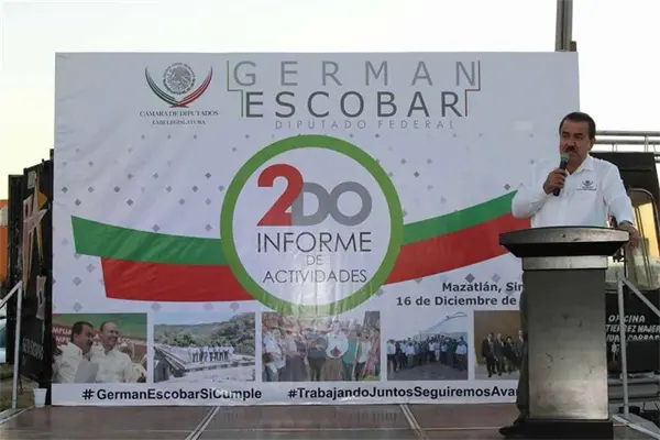 Mazatlán, Sin.- Durante su segundo informe de labores legislativas y de gestión social, el Diputado federal Germán Escobar Manjarrez, destacó la inversión de más de 380 millones de pesos en más de 80 obras para los siete municipios que conforman el VI Distrito.