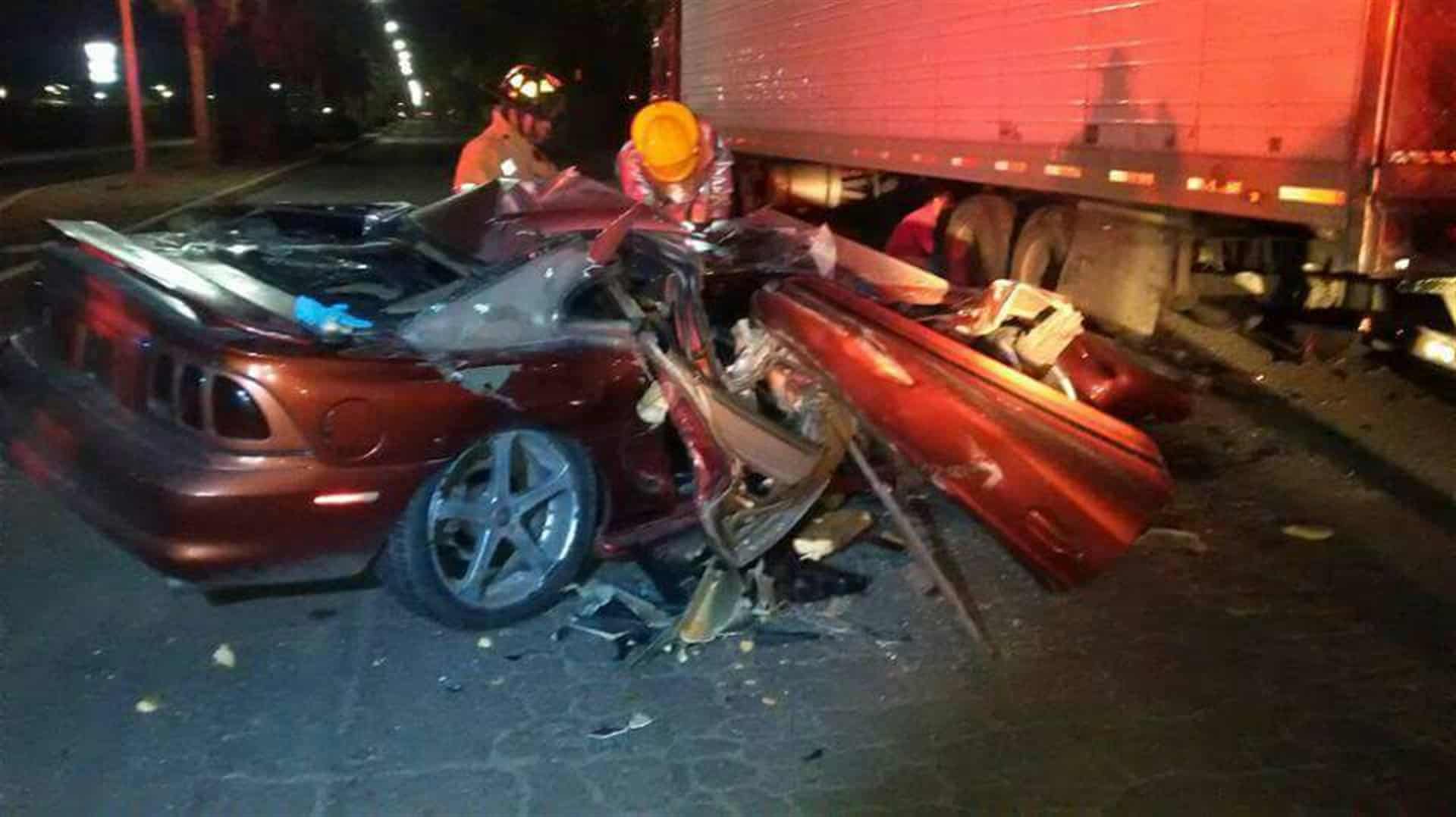 El fuerte impacto ocurrió cuando dos jóvenes viajaban a exceso de velocidad en un vehículo Ford Mustang, de color naranja, modelo 1997, sin placas de circulación, sobre el carril de acotamiento del Centenario, con dirección al oriente, pero al llegar al cruce del bulevar Chihuahuita, debido a la velocidad el conductor perdió el control de la unidad y chocaron con la caja refrigerada de un tráiler con placas 2760JZ de Oklahoma, mismo que se encontraba estacionado sobre el Centenario.