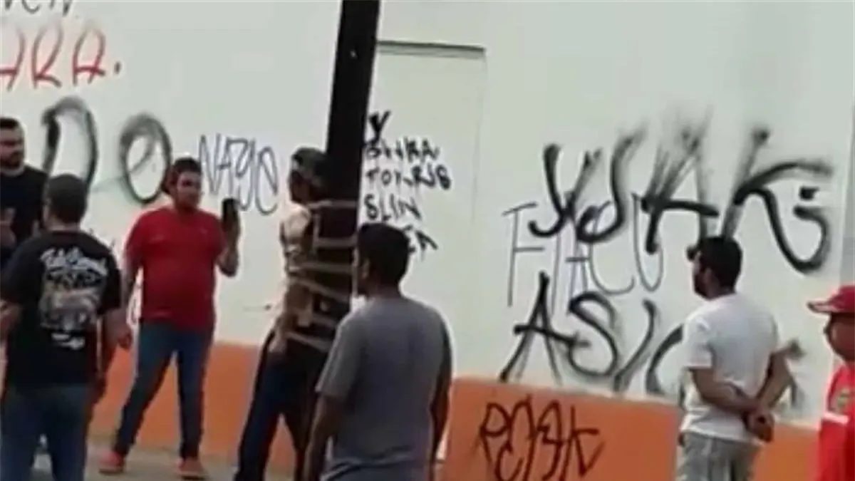 Atrapan ciudadanos a presunto asaltante y lo amarran a un poste