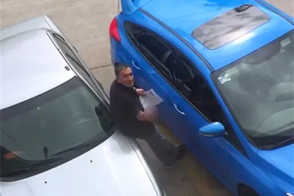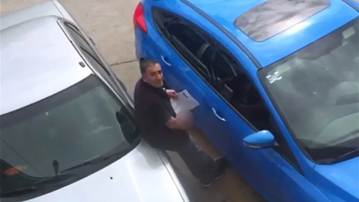 En el video se aprecia como un hombre de alrededor 45 años se masturba cuando se encuentra en medio de dos vehículos y se cubre con unas hojas para no ser detectado por los transeúntes.