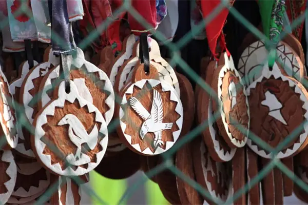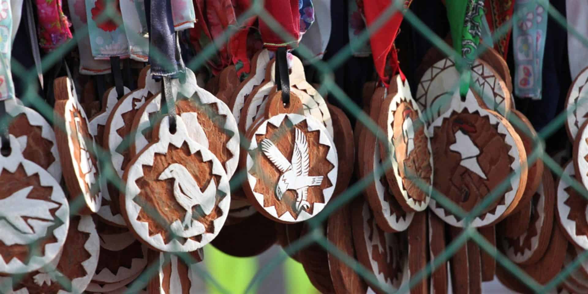 La presea es tallada en madera y tiene diferentes figuras, como tortugas, conejos y pájaros carpinteros, entre otras imágenes.