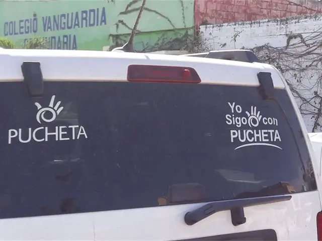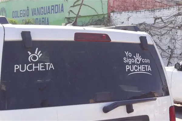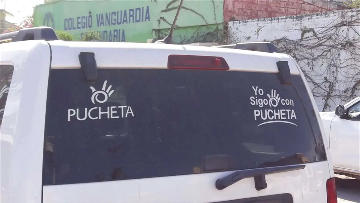 Colocan calcomanías con el slogan Yo sigo con Pucheta