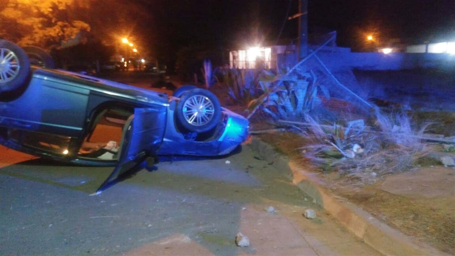 Tras esto, el conductor del automóvil perdió el control de la unidad, se subió a la banqueta y, tras derribar parte de un cerco que delimitaba un estacionamiento, el vehículo terminó volcado sobre la calle María Elena Vizconde.
