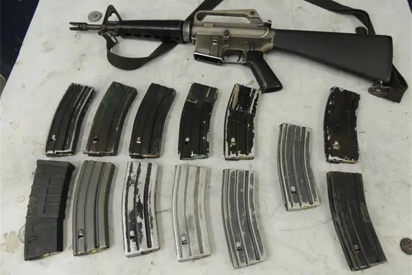 Policías municipales y personal militar le aseguraron un rifle AR-15 con su cargador abastecido con 29 cartuchos y uno más en la recámara del arma. Además de una mochila en la que traía 12 cargadores, 11 de ellos de metal y uno de plástico.