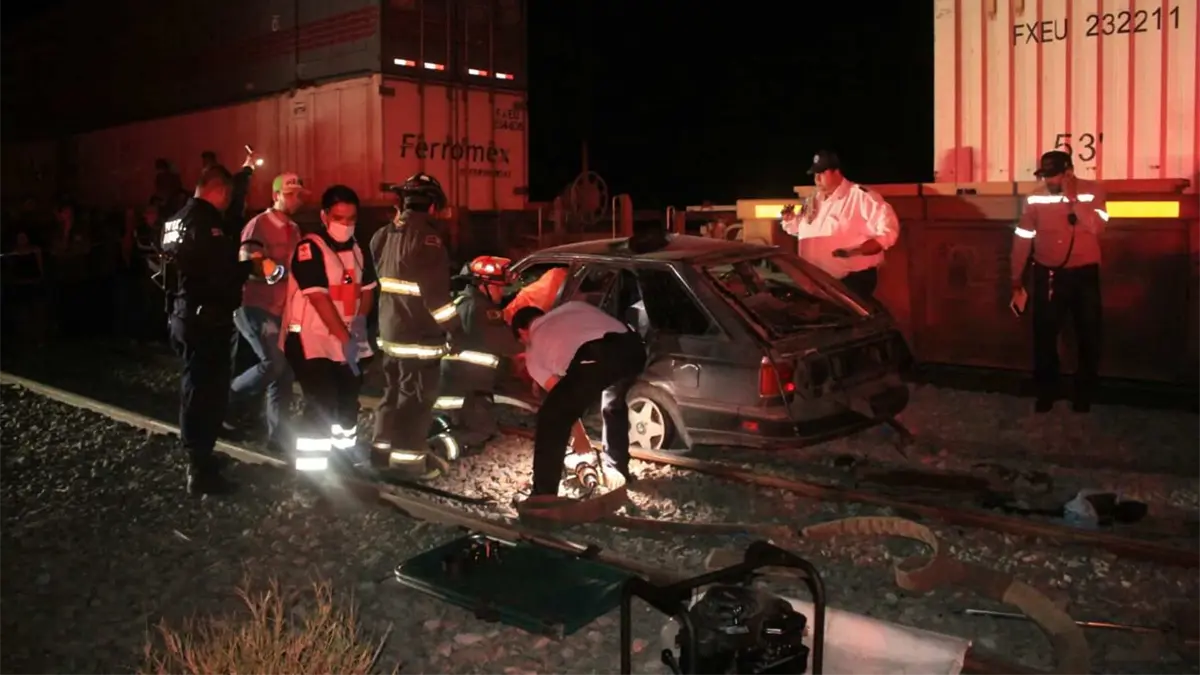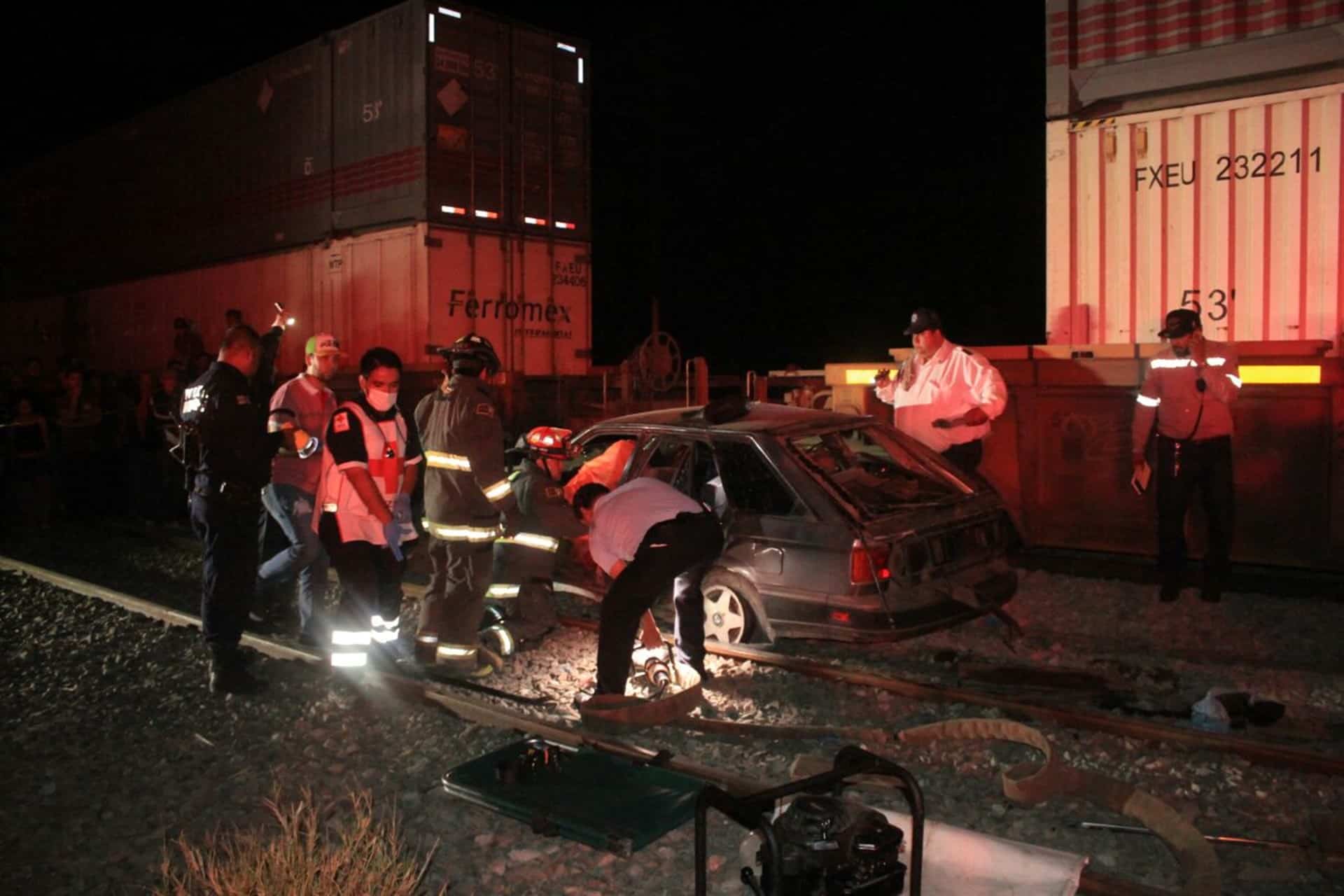 Guasave, Sin.- Dos mujeres sin vida y tres lesionados, entre ellos una mujer, es el saldo de un aparatoso accidente que se registró los últimos minutos de este sábado, cuando los ocupantes de un vehículo intentaron ganarle el paso al tren en Estación Bamoa, pero no lo lograron y fueron arrollados.