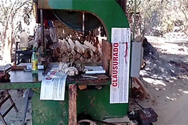 Con fundamento en el artículo 161, fracciones I y II, de la Ley General de Desarrollo Forestal Sustentable (LGDFS), se aplicó como medidas de seguridad el aseguramiento precautorio de la madera y se impuso la Clausura Total Temporal del CAT referido, así como de una cierra cinta instalada.