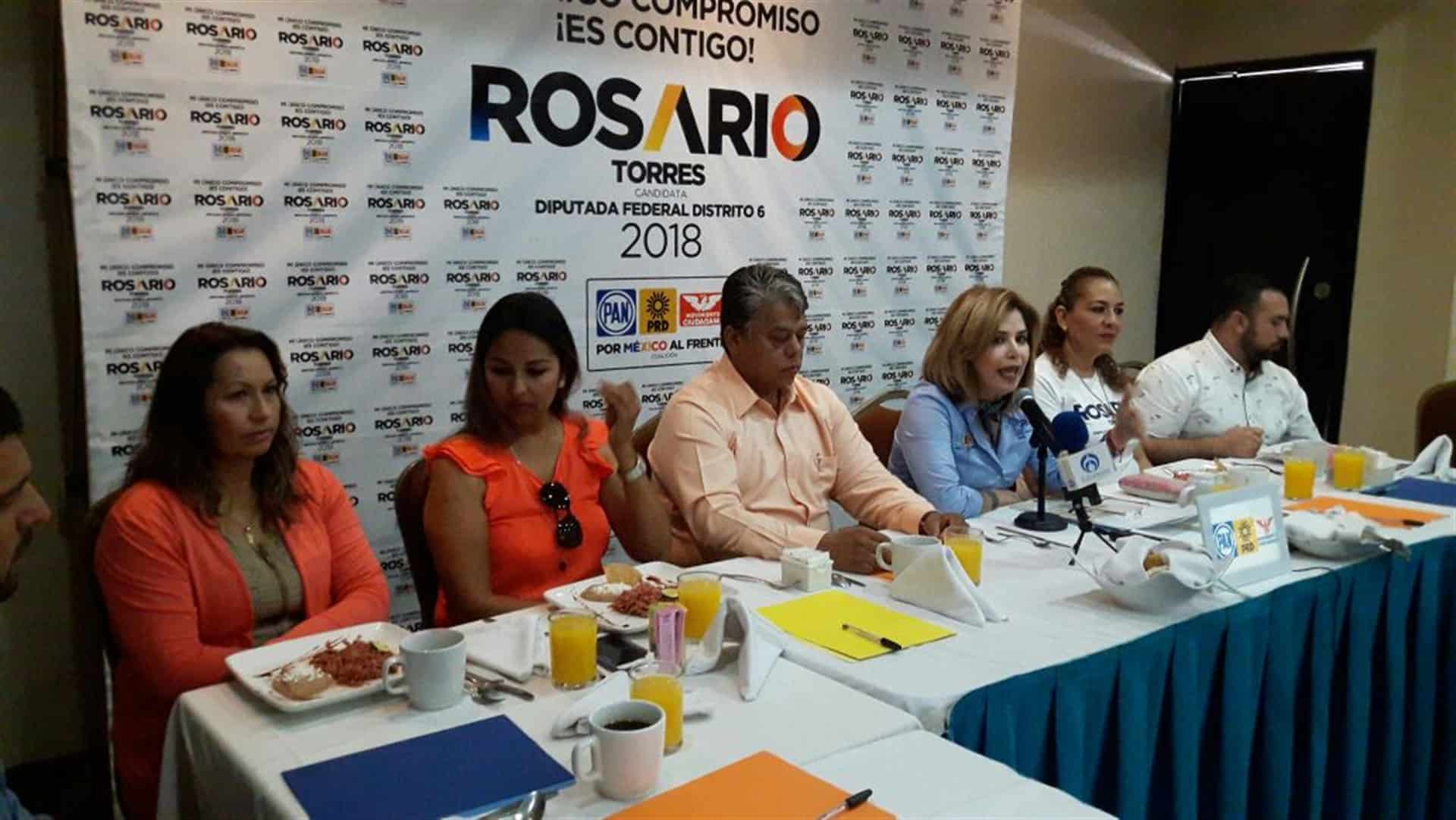 Esta es la lista de propuestas primarias de Rosario Torres , la abanderada de la alianza PAN, PRD y Movimiento Ciudadano, junto con el Partido Sinaloense (PAS), para los municipios de Culiacán, Cosalá, Elota, San Ignacio y Mazatlán, dijo que éstas no son promesas, son propuestas de trabajo legislativo de problemas y demandas sociales reales.