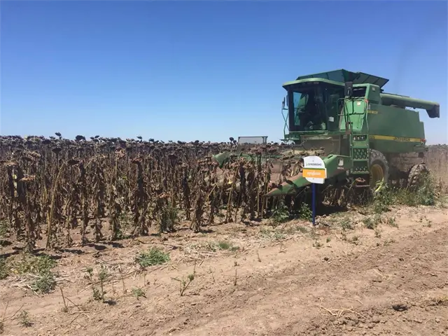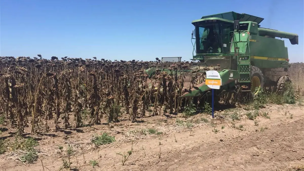 Cosechan girasol en el Valle del Carrizo