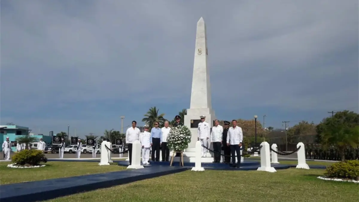 Las autoridades del Sector Naval Militar, de gobierno e invitados especiales montaron una guardia de honor y colocaron una ofrenda floral en el obelisco de la puntilla, en honor a los cadetes que defendieron las tierras de México de tropas estadounidenses.