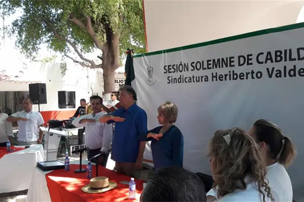 Los Mochis, Sin.- Debido al 81 aniversario de la fundación de la Sindicatura Heriberto Valdez Romero, conocido popularmente como El Guayabo, el Cabildo de Ahome llevó a cabo una sesión solemne en las inmediaciones de las oficinas de la Sindicatura.