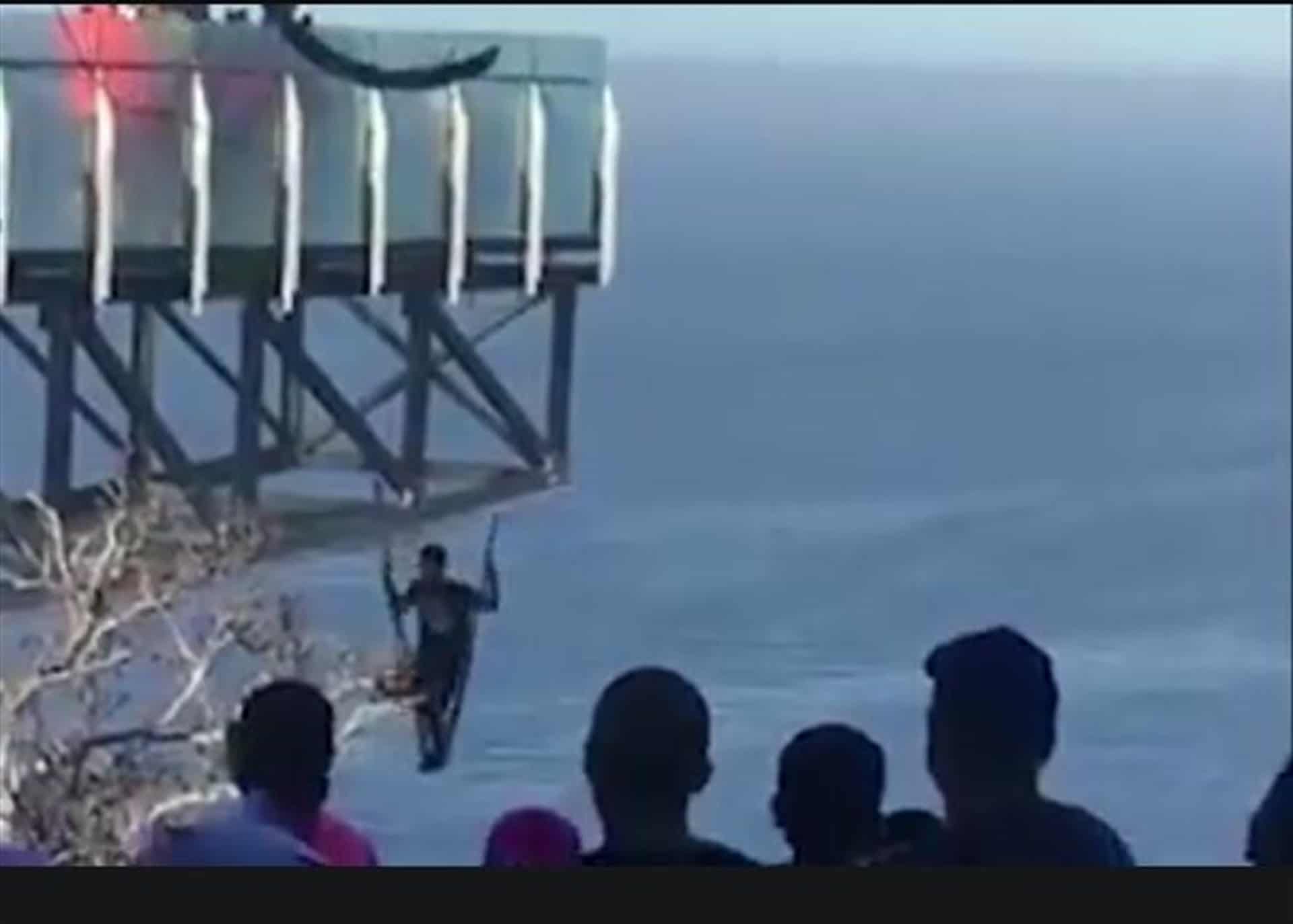 Mazatlán, Sin.- Viral se ha hecho en las redes sociales un video donde un joven cuelga desde el puente volado de cristal en el remodelado Faro de Mazatlán.