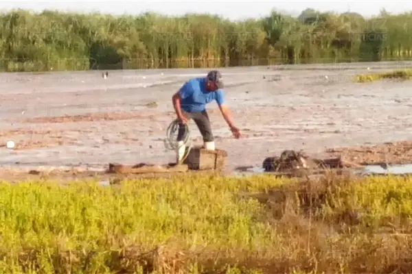 Simón se trasladó al lugar y se percató que entre las ramas, a unos 60 metros de la orilla, sacaba la cabeza el hombre que pedía auxilio, por lo que regresó a su casa a llevar algo para rescatarlo.
