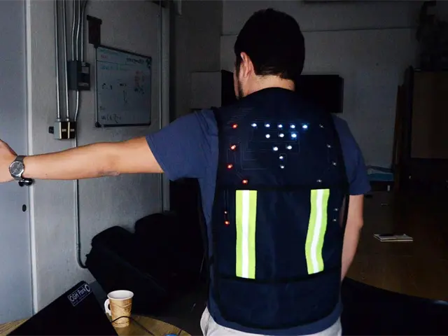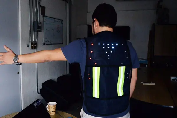Diseñan chaleco con direccionales led para mejorar seguridad de ciclista