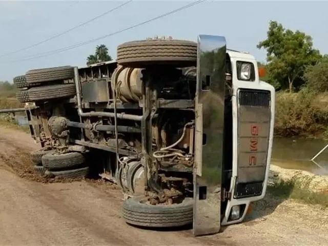 De acuerdo con el conductor de la unidad de carga, al transitar por el bordo del canal se hundieron las llantas del lado izquierdo, lo que provocó que volcara.