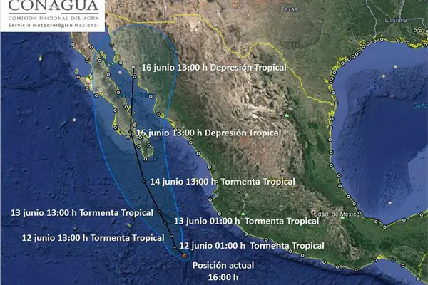 De continuar con esa trayectoria e intensidad, se espera que la mañana del miércoles estaría llegando a Cabo San Lucas.