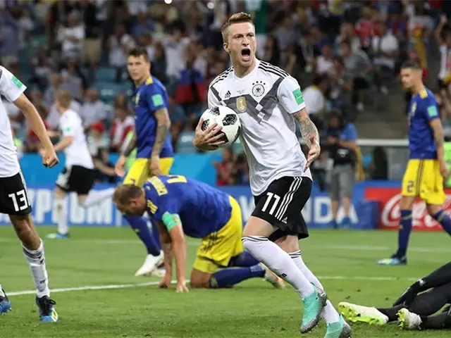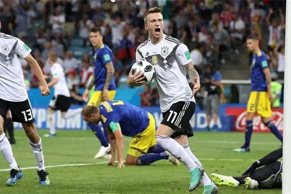 Para este duelo, el técnico de Alemania, Joachim Löw hizo cuatro modificaciones. Marco Reus fue un auténtico demonio en el ataque de los actuales campeones del mundo y una de las novedades en la alineación. Al 9’ mandó el primer aviso con un disparo que le sacó Víctor Lindelof, defensa sueco del Manchester United.