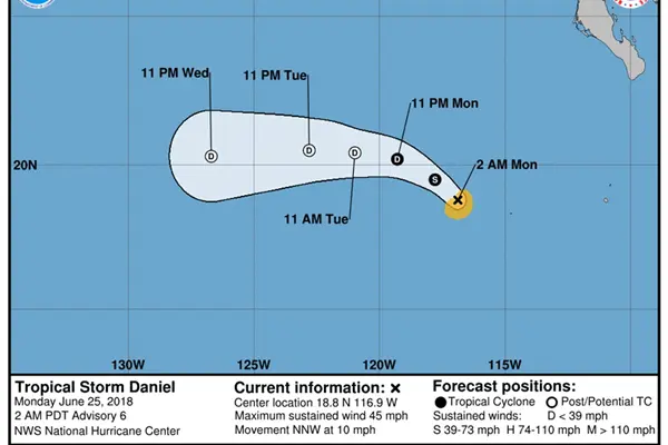 Ciudad de México.- El Servicio Meteorológico Nacional (SMN) reportó esta madrugada que la tormenta tropical Daniel se debilitará rápidamente al suroeste de Baja California Sur, sin afectar costas nacionales.