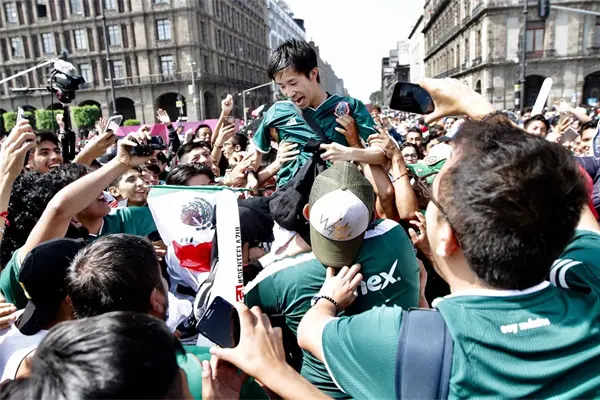 Ondeando las banderas de México y gritando: “Coreano, hermano ya eres mexicano”, y con el sonido del claxon de algunos automovilistas que pasan por el lugar, los ciudadanos externan su beneplácito.
