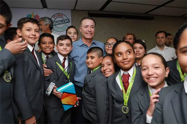 Gobernador se toma foto con niños de la Olimpiada del Conocimiento