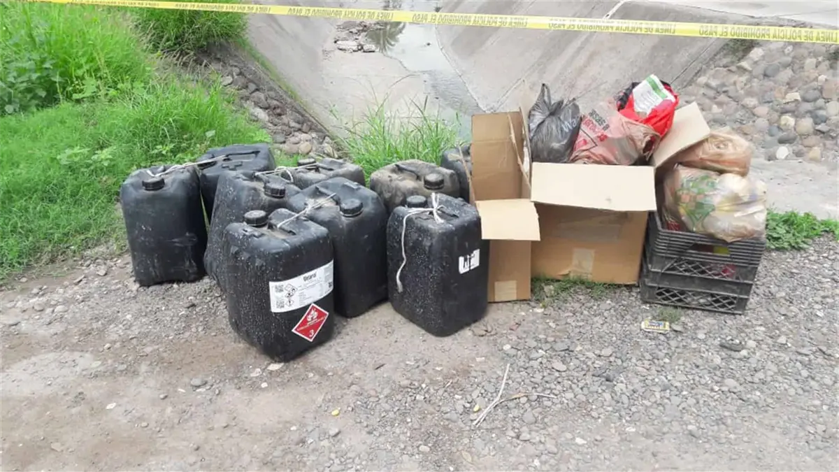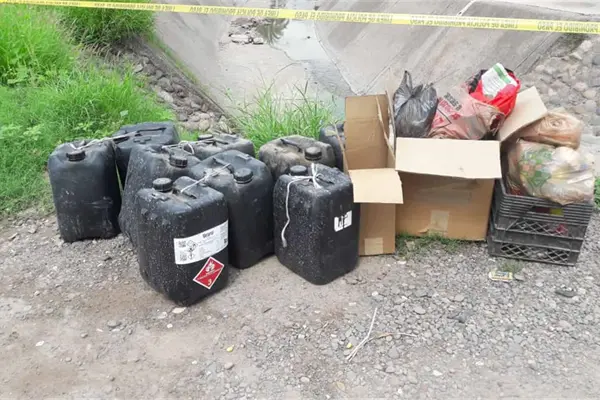 Tiran bidones con químicos para elaborar droga sintética