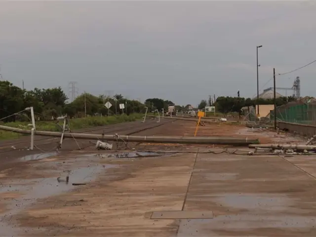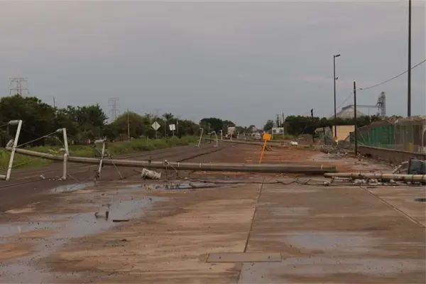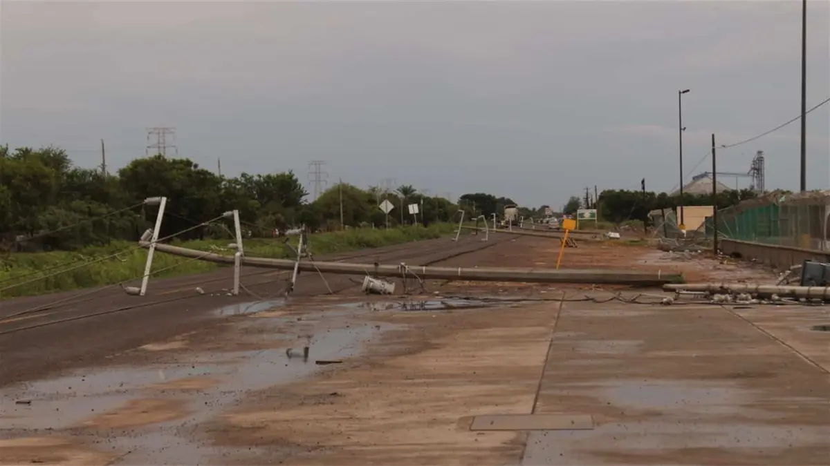 Fuertes vientos derrumban postes sobre carretera al Campo 35