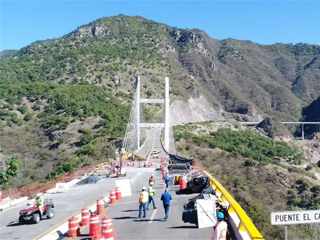 Después de una serie de reparaciones en este puente, ubicado sobre la autopista Mazatlán-Durango al límite de ambos estados, tras verse afectada por la explosión de una pipa de combustible, las autoridades realizan maniobras para confirmar su reapertura total de cuatro carriles en los próximos días, como habían sido los compromisos.