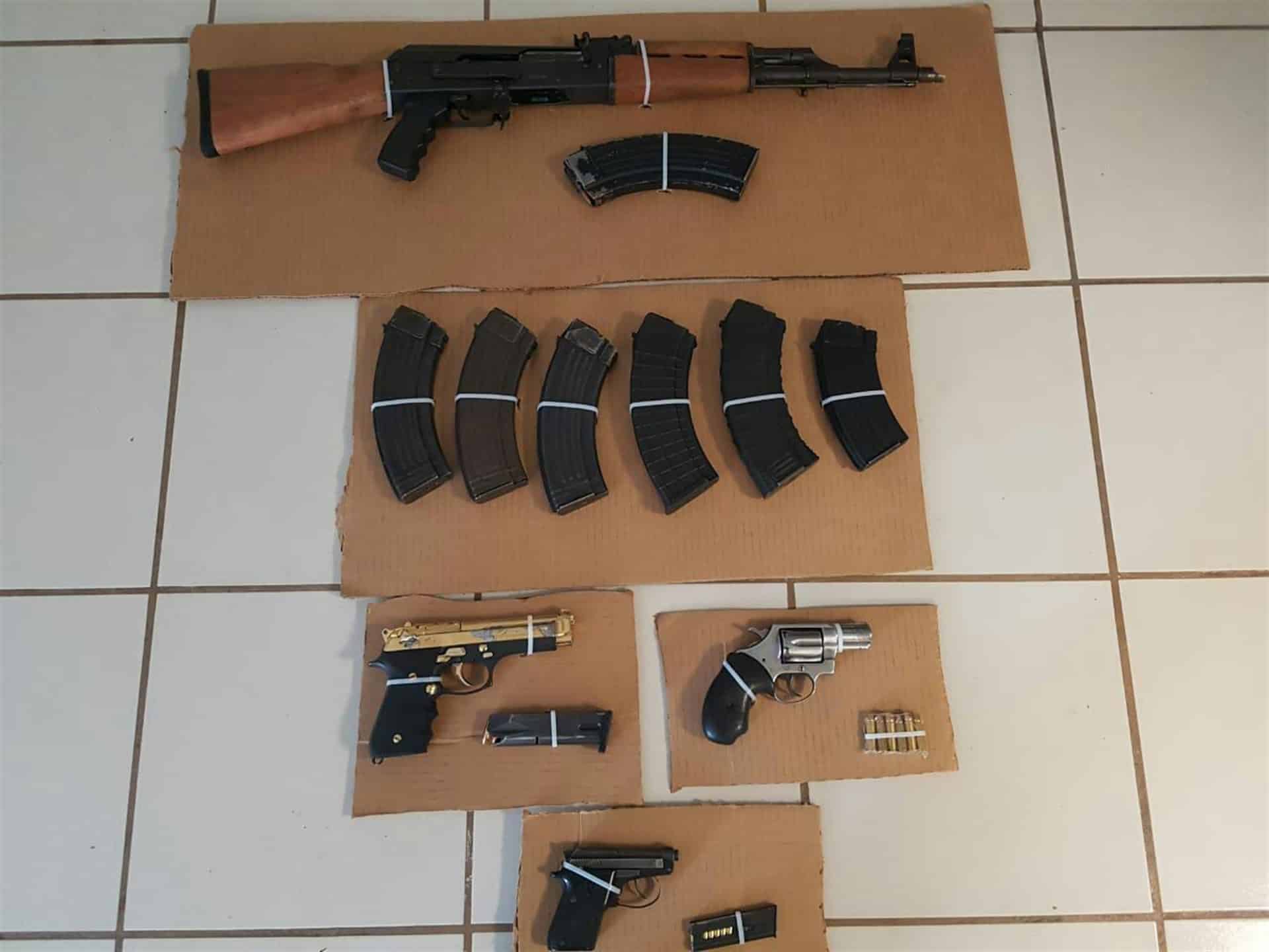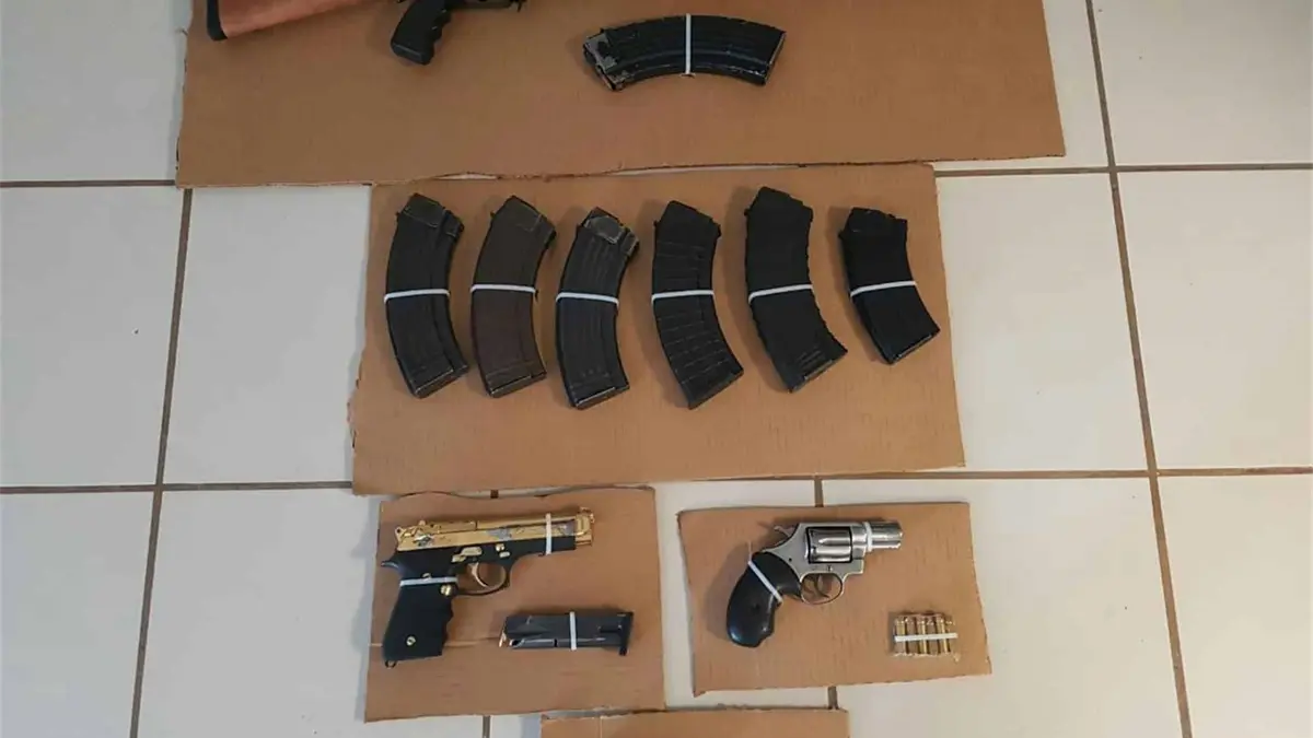 Al inspeccionar el interior de dicho costal, encontraron un AK-47, dos pistolas escuadras y un revólver, seis cargadores abastecidos para AK-47, 87 cartuchos para cigarro electrónicos con una sustancia amarilla en su interior con olor característico de la droga conocida como mariguana y una bolsa de plástico con 455 gramos de la misma droga.