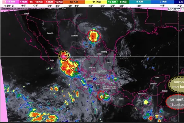 En su registro por regiones, el SMN estableció para la Península de Baja California cielo nublado por la tarde, con tormentas puntuales fuertes y actividad eléctrica en Baja California Sur. Ambiente muy caluroso, viento del noroeste de 15 a 30 kilómetros por hora.